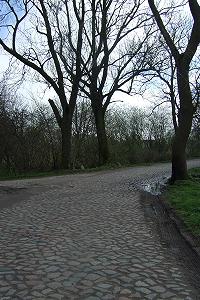 Пройти к прудам можно через проход в древней крепостной стене, сложенной из крупного балтийского валуна.