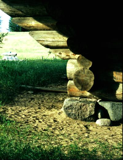 В основании церкви - валуны. Толщина бревен нижних венцов вызывает невольное уважение.