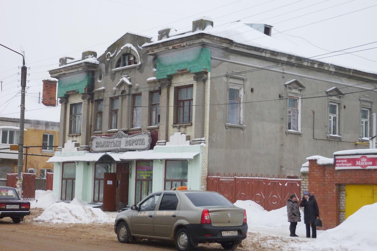 А если чуть пройти по 1-й Московской от перекрестка в противоположном направлении, внимание сразу привлечет неоклассический дом-магазин Кочетковых. Как почти вся шуйская неоклассика, дом в своем облике несет узнавамые черты модерна, что придает постройке выразительность и смягчает известную сухость, обычно присущую "чрезмерно классическим" неоклассическим зданиям. Магазин и поныне функционирует, в нем можно приобрести хорошо известную ценителям продукцию ОАО «Шуйская водка».