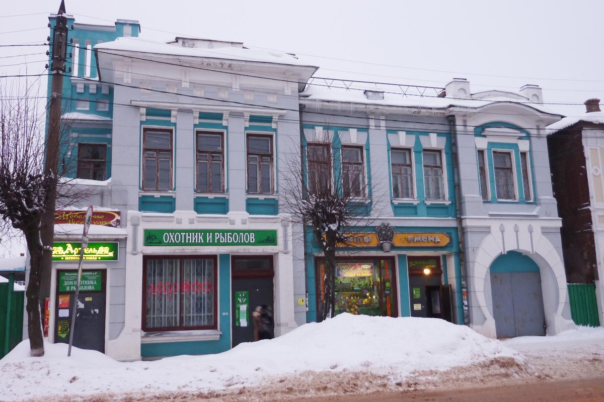 Из поперечных улиц, пересекающих линии наших предшествующих виртуальных прогулок, особо нужно отметить улицу Свердлова (бывшуя Ковровскую), переходящую на севере в Зеленую площадь с храмовым комплексом и колокольней. Колокольня очень эффектно замыкает перспективу улицы. Однако имеет смысл иногда посмотреть и по сторонам, особенно в квартале между улицей Ленина и Васильевской. Здесь находится чрезвычайно выразительный дом в стиле модерн, построенный по проекту известного ивановского архитектора А.Ф.Снурилова (Свердлова, 5).