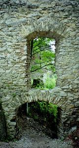 Так выглядит вход в дворцовую часть замка, которая слабо заросла деревьями и легко доступна для осмотра.