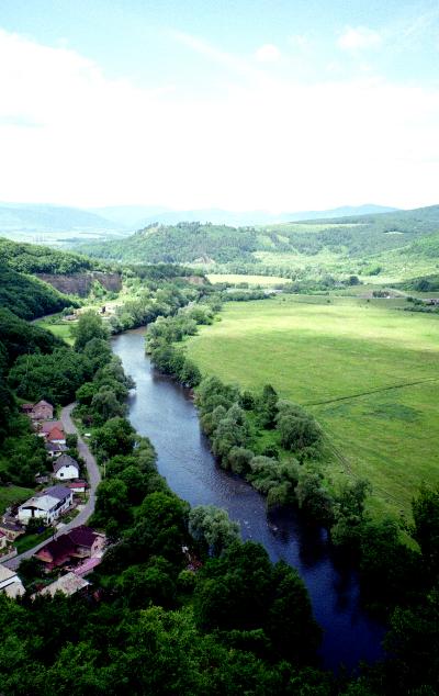Внизу - река Грон. Трудно сказать, какие чувства испытывали обитатели замка при виде реки и расстилающейся за ней равнины. Наверное, разные - и гордость, и страх, и, может быть, безразличие. Но сейчас - дух захватывает...