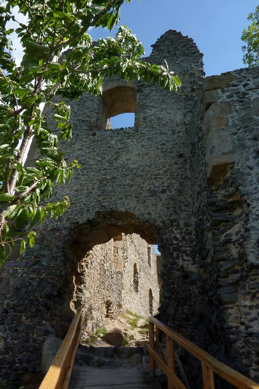 Происхождение нынешнего входа в замок не совсем понятно: то ли обитатели замка ходили так же, то ли это просто пролом в стене. По крайней мере никакой специальной кладки, обычно сопровождающей арочные перекрытия, не видно. Впрочем, базальтовые "карандаши" распор, видимо, держат.