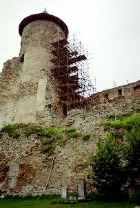 Самое старое сооружение в крепости, оборонительная башня верхнего замка, сейчас в лесах. Идет реставрация, и попасть в башню нельзя. А жаль...