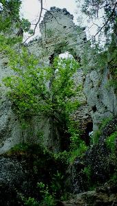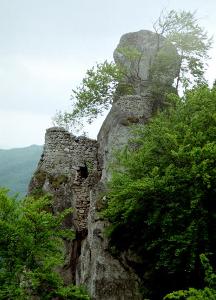 Среди этих скал возвышаются руины небольшого сторожевого замка, построенного в 1470 году. В 1550 году укрепления пострадали из-за сильного пожала, позднее замок был заново отстроен. Еще в XVIII веке здесь размещался военный гарнизон, но землетрясение 1763 года разрушило уже заброшенную к тому времени крепость, и больше ее не ремонтировали. Когда-то замок состоял из двух частей и следовал за рельефом местности. В нижней части располагался дворец с круглой башней над воротами, фрагменты стен были встроены прямо между скал. В верхний замок можно было попасть только по тоннелю, прорубленному в скале. Эта часть крепости была фактически неприступной.