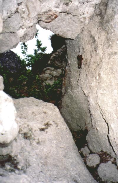 Попасть в верхний замок можно сквозь узкий вход, вырубленный в скале, хватаясь за вмурованные в стену железные кольца.