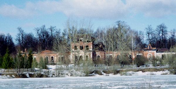 Если ехать в Соху из Старожилова, с дороги открывается прекрасная панорама всей усадьбы: барский дом на берегу пруда, хозяйственные постройки вдали.