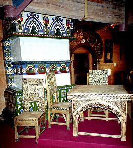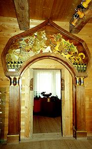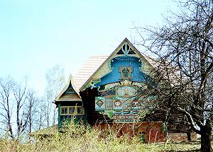 Сама постройка очень оригинальна. Своими фантастическими росписями, завитками чудовищных цветов, странными зверями и птицами она напоминает напоминает домик из народных сказок.