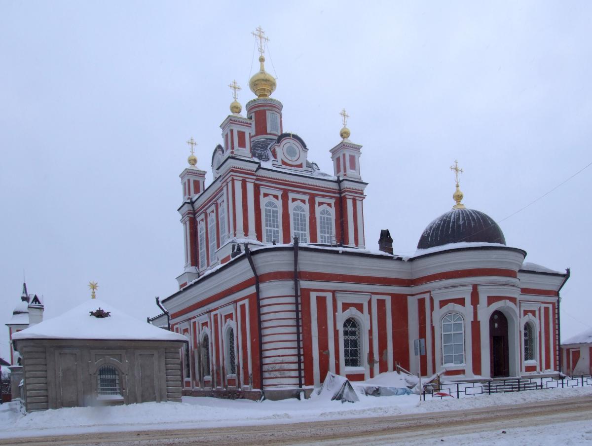 Чуть поодаль от нее - Корсунский собор, выстроенный в 1795-1804 году по проекту смоленского архитектора Осипа Спиркина на пожертвования торопецких граждан и Павла I. Стоявшая на этом месте старая церковь сильно пострадала во время пожара 1792 года и была разобрана.
