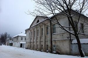 На Базарной площади стоит и так называемый "дом с портиком", он был построен в конце XVIII века, до регулярной перепланировки, и входил в комплекс церковных зданий (к южному фасаду дома примыкают остатки Входоиерусалимской церкви). Портик пристроили в начале XIX века.