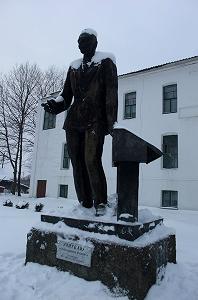 На другой стороне улицы, примерно посредине между двумя храмами, у здания школы стоит памятник Учителю. Наверно, хорошие здесь учителя, если возникла мысль поставить такой памятник.