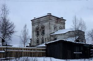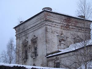 Высокий двусветный пятиглавый (когда-то) четверик сочетает в себе традиции нарышкинского барокко и местного зодчества.