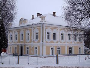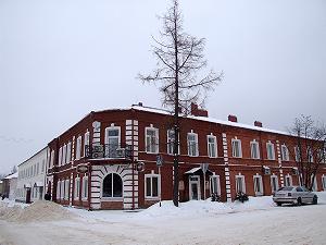 Интересен дом с торговыми лавками на первом этаже, выстроенный в конце XIX века на центральной Базарной площади. Полукруглый ризалит в нижней части выполнен из кирпича, а граненый второй этаж - деревянный.