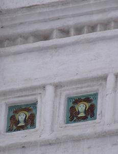 В отделке церкви использованы керамические изразцы с головками херувимов.
