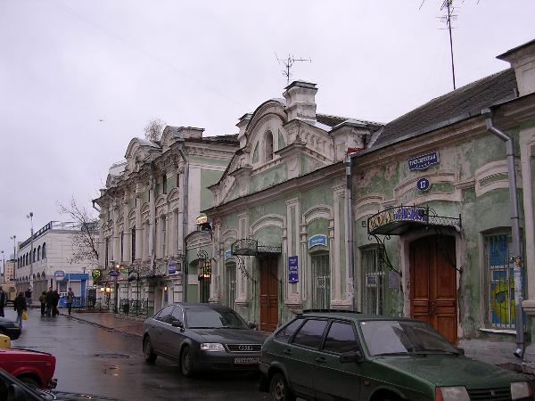 Довольно далеко на Трехсвятской улице (дома 15-17, нумерация домов с юга на север) расположен комплекс из двух зданий - очень симпатичный и стильный образец необарокко. Дома выстроены в начале 1870-х годов купцом Ф.Е.Нечаевым.