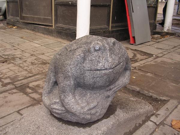 Эта очаровательная лягушка живет на пересечении бульвара Радищева с Трехсвятской улицей. Хотя амфибия (как и другие скульптуры на бульваре) родилась значительно позже окружающих особняков, ведет оно себя по отношению к архитектурному наследию весьма тактично,