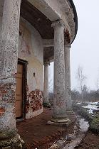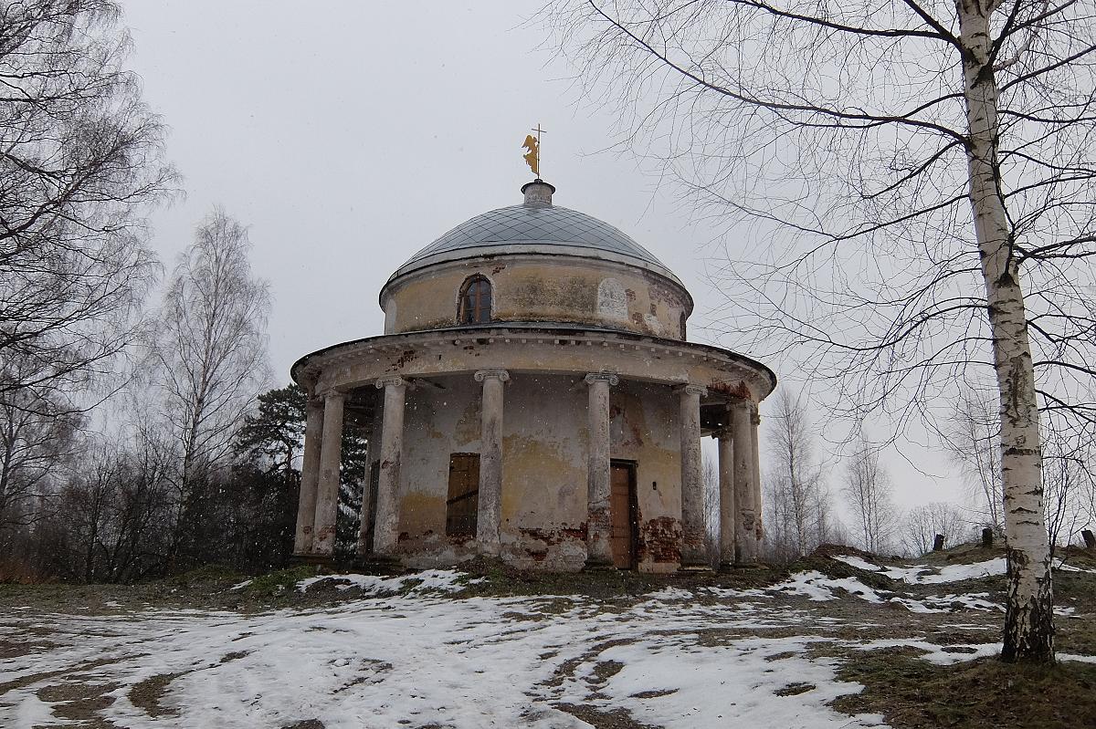 Васильева гора - небольшая деревенька, каких много вокруг. Однако стоящий при въезде храм Даниила Столпника на удивление непохож на обычную кладбищенскую церковь. Сюда стоит заглянуть, особенно если вы соберетесь посетить знаменитую усадьбу Знаменское-Раек, от которой до Васильевой горы всего два километра. История возведения часовни напрямую связана с грандиозным строительством в Райке, где по проекту Николая Александровича Львова возводился дворцово-усадебный комплекс для Федора Ивановича Глебова. В Райке сохранилась возведенная еще при И.Ф. Глебове церковь Знамения Божьей Матери, при которой был погост. Храм стоит близко к усадебным постройкам, поэтому владельцам захотелось упразднить кладбище, что они и сделали, перенеся его на Васильеву гору. Там решено было соорудить часовню, которая была возведена в 1790-е годы по проекту Н.А. Львова. Часовня-ротонда напоминает другие усадебные церкви, спроектированные архитектором. Та же легкость и вписанность в ландшафт, верхний естественный свет, круговая колоннада. Вскоре в часовне появились росписи, частично сохранившиеся до наших дней. Фрески выполнены по мотивам итальянских, а некоторые из них наивно, но довольно точно, копируют росписи Рафаэля в папском дворце Ватикана (так называемые Станцы Рафаэля). Известно преклонение Львова перед итальянским искусством эпохи Возрожденья, Николай Александрович даже перевел и издал «Четыре книги Палладиевой архитектуры». Конечно, творчество Рафаэля не могло оставить равнодушным часто бывавшего в Европе Львова (служившего в Коллегии иностанных дел). Скорее всего, именно оттуда он привез образцы, которые послужили основой внутреннего украшения храма. Сейчас идет реставрация храма и расчистка росписей. Вокруг ротонды даже устраивают подсветку (по крайней мере проложен провод и вмонтированы нижние фонари). Церковь на замке, что в наших условиях объяснимо и совершенно правильно. Видимо, восстановление ведется вместе с реставрацией усадебного комплекса "Знаменское-Раек". Изменения к лучшему, происходящие в последнее время, не могут не радовать. Спасибо людям, пытающимся спаси и сохранить лучшие образцы архитектурного наследия прошлого и вдохнуть в них жизнь! январь 2018Библиография: П.С. Иванов Храмы Новоторжской земли. Церковно-краеведческие очерки. Тверь, 2010. Живой журнал А.О. Журбы - фотографии фресок часовни (одна из них приведена на нашей страничке в сравнении с фреской Рафаэля)