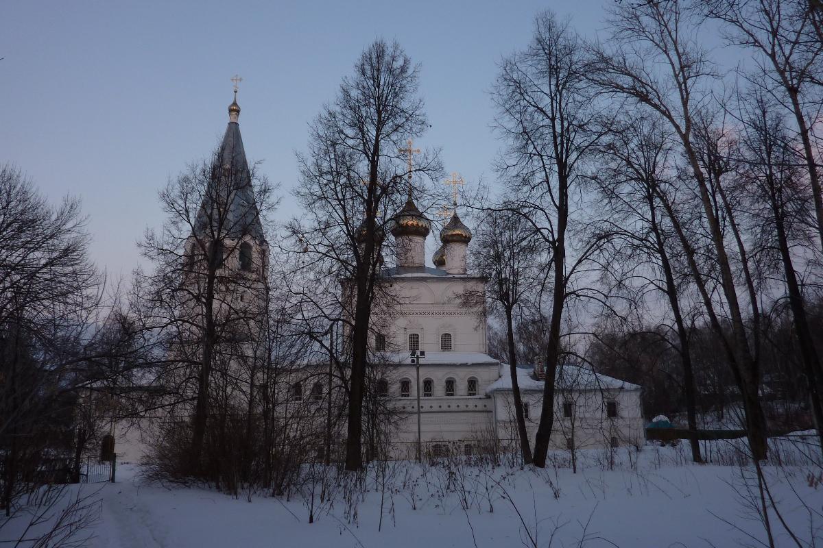 Почти напротив - комплекс Благовещенского монастыря, основанного по указу царя Михаила Федоровича. В 1683-1689 годах был возведен нынешний каменный Благовещенский храм и шатровая колокольня. Собор и колокольня соединены арочной галереей на высоком основании.