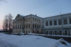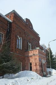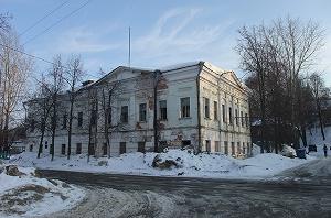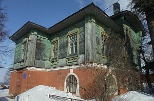 Внушительное здание чуть поодаль - бывшая школа для глухонемых детей. Можно сказать - дом с мезонином. Мезонин богато декорирован в русском стиле.