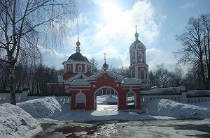 Напротив колокольни - надвратная церковь Всех Святых, построенная в 1791-1793 годах над главным северным входом в монастырь. Проездные арки заложены в советское время.