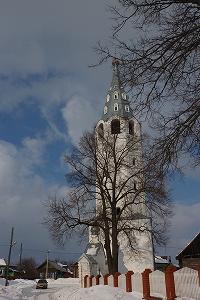 Примерно в то же время была выстроена отдельно стоящая шатровая столпообразная колокольня. Она состоит из двухъярусного четверика и восьмигранного столпа с ярусом звона, завершающегося изящным шатром с маленькой главкой.