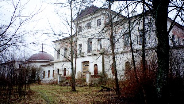 Парадный фасад главного дома трудно рассмотреть из-за разросшихся кустов и деревьев. Проект дворца иногда приписывают самому Джакомо Кваренги. Судя по размаху и неординарности композиции, общий замысел постройки возможно принадлежал великому зодчему, однако недостаточная пропорциональность и гармоничность свидетельствуют о местном, крепостном исполнении.