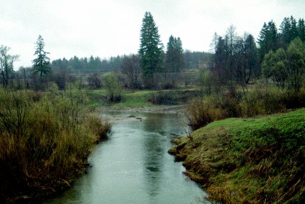 Если идти по аллее вниз от усадебного дома, то, миновав бывший хозяйственный двор, можно выйти к речке Шоше. Очень симпатичные пейзажи вокруг, да и сама речка какая-то домашняя.