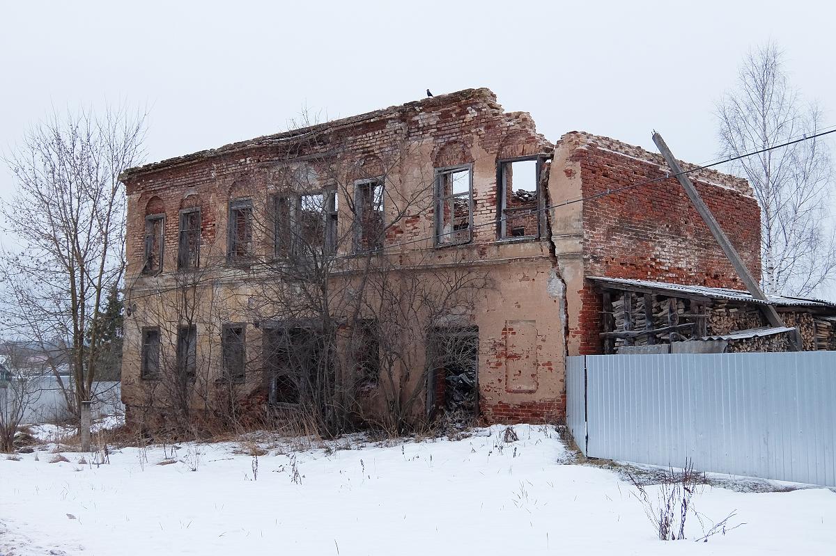Около реки стоит более затейливо оформленный дом того же времени. Его отличает завершение окон второго этажа арочными нишами. На первом - ряд окон прерывается проездной аркой в середине. Видно, что первый этаж был перестроен.
