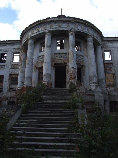 От лестницы правда осталось не так уж много, исчезли скульптуры львов. Да и сами парапеты, на которых стояли скульптуры, разрушаются.