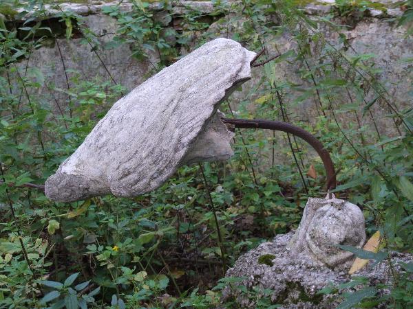 Если спуститься с лестницы и пойти вперед, можно наткнуться на руины небольшого фонтана с остатками скульптуры. Раньше эта часть парка вырубалсь, и открывался вид вниз.