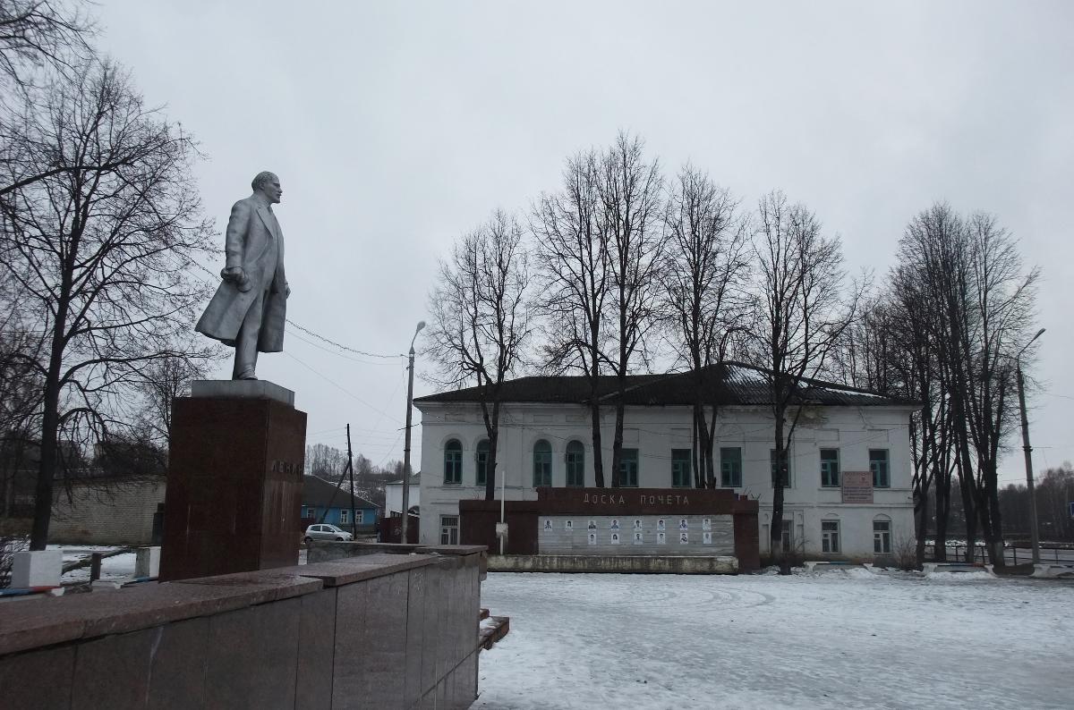 Со стороны площади на усадьбу Крымова взирает неизбежный в каждом городе Ленин. В Зубцове памятник имеет романтизированный и одухотворенный облик, приданный металлической фигуре скульптором Ю.Г.Орехов.