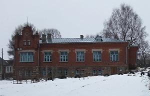 Неподалеку от церкви стоит, вероятно, дом причта - добротное двухэтажное кирпичное здание.