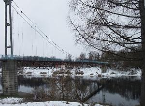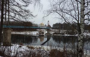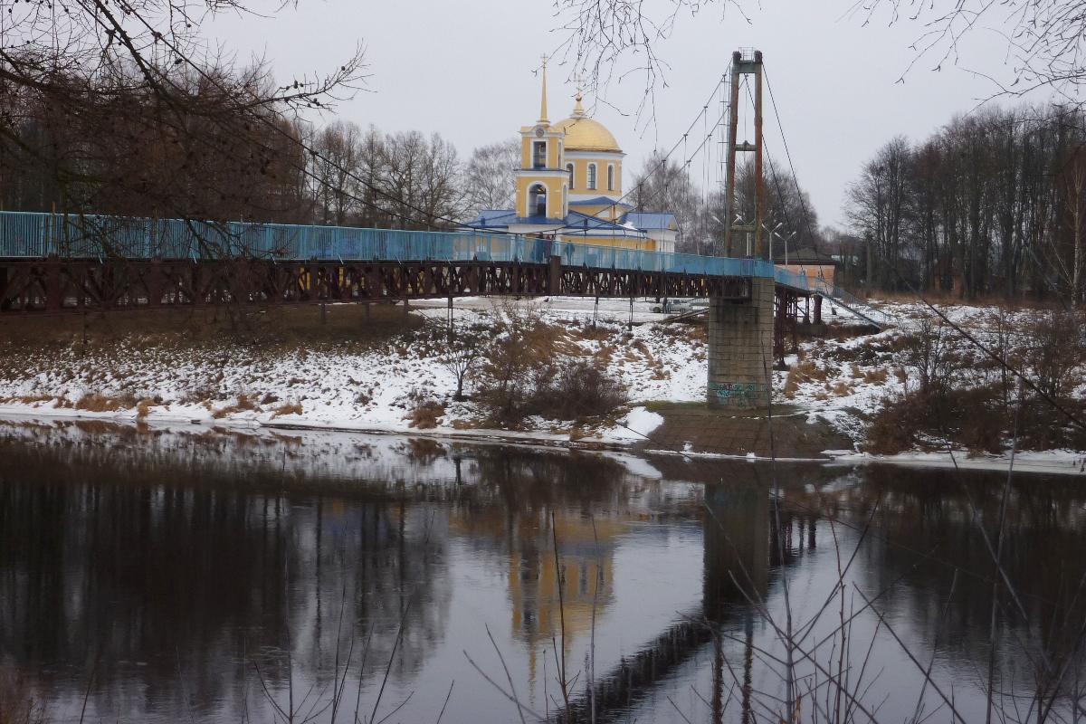 От Успенской церкви на правый берег Волги ведет современный висячий пешеходный мост.