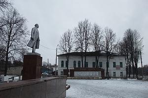 Со стороны площади на усадьбу Крымова взирает неизбежный в каждом городе Ленин. В Зубцове памятник имеет романтизированный и одухотворенный облик, приданный металлической фигуре скульптором Ю.Г.Орехов.